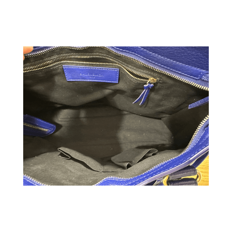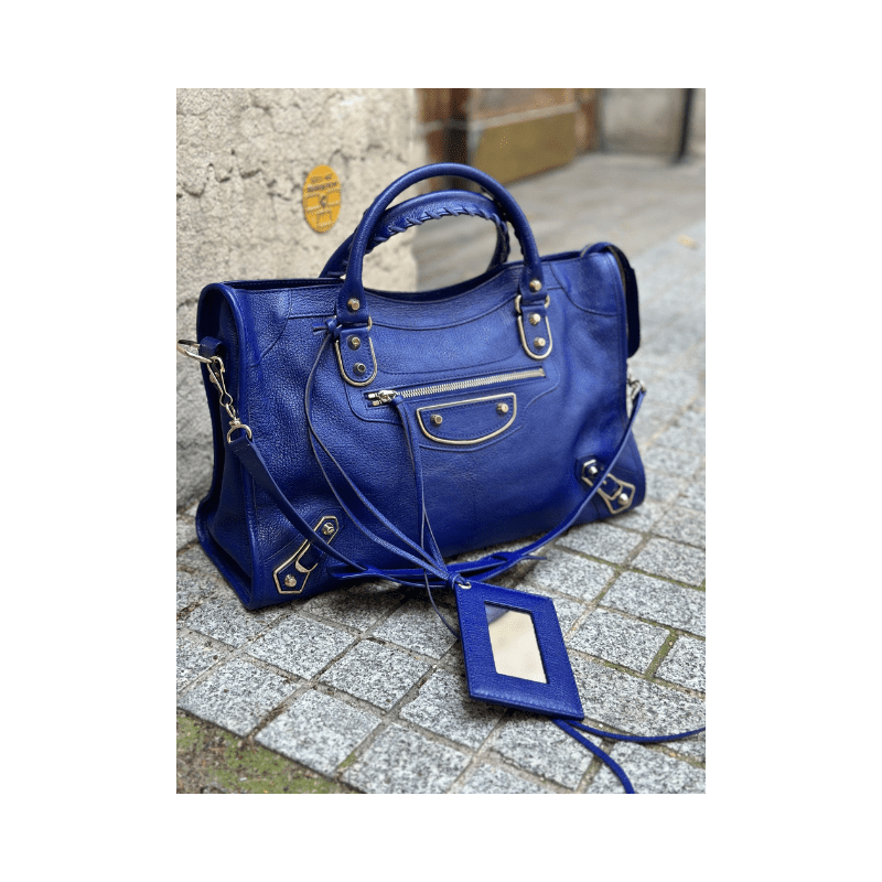 Sac Balenciaga City Metallic Edge en cuir de chèvre bleu brillant & finitions or